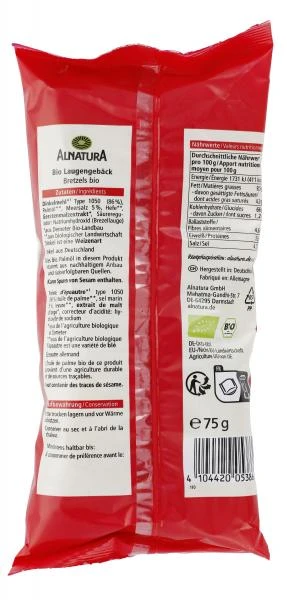 Kleine Brezeln, großer Knabberspaß: Diese Bio-Laugenbrezeln in Demeter-Qualität werden aus deutschem Dinkelmehl knusprig gebacken und mit Meersalz bestreut. So sind die Alnatura Dinkel-Minibrezeln ein beliebter Snack für viele Gelegenheiten, ob auf der Party oder unterwegs, und können auch Zutat für kreative süß-salzige Backkreationen sein. Ihre Rezeptur ist vegan.