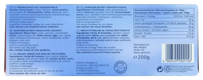 Feinstes Spritzgebäck mit einer angenehmen geschmacklichen Kokosnote.