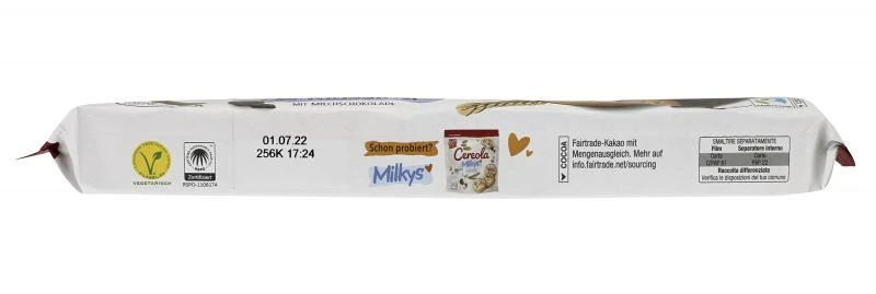 Aus sorgfältig ausgesuchten Zutaten unvergleichlich knusprig locker gebacken, mit dem vollen Geschmack von sonnengereiften Getreide und köstlich zarter Milchschokolade aus fair gehandeltem Kakao: das unverwechselbare Mürbegebäck für den bewussten Genuss.