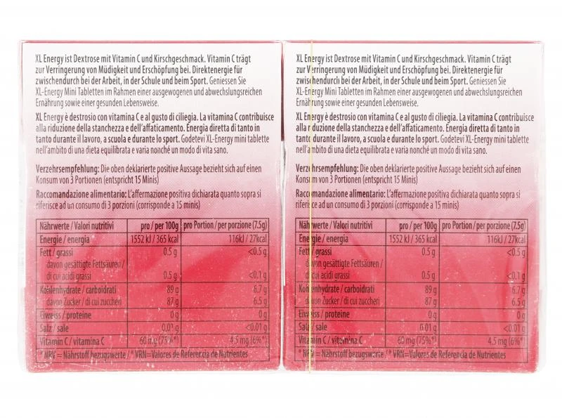| Traubenzucker. | Dextrose, Maltodextrin, Säuerungsmittel: Citronensäure, Trennmittel: Magnesiumsalze der Speisefettsäuren, Aroma, Vitamin C. |
