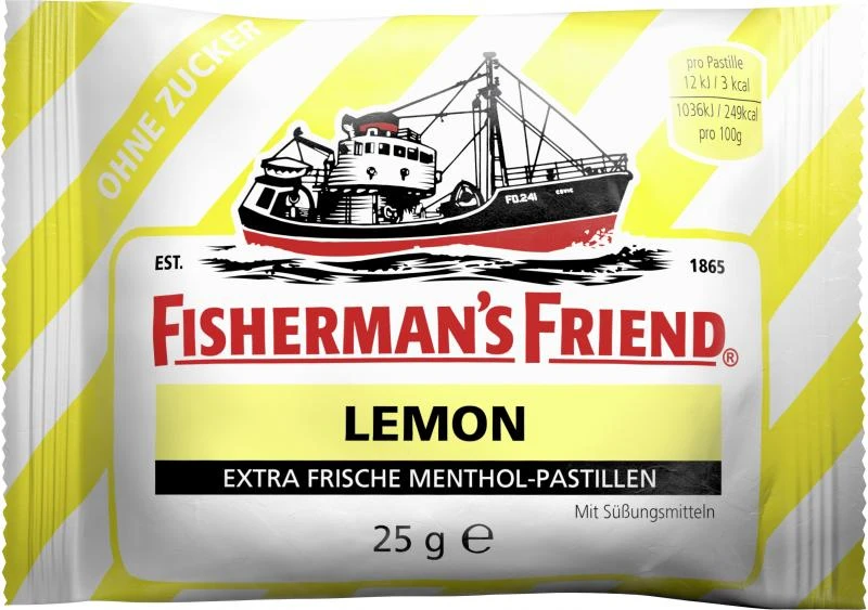Extra frische Menthol-Pastillen mit Süßungsmitteln. Speziell für die Hochseefischer von Fleetwood, damit sie ihren Hals vor Wind und Wetter schützen, frei atmen und einen klaren Kopf bewahren konnten.