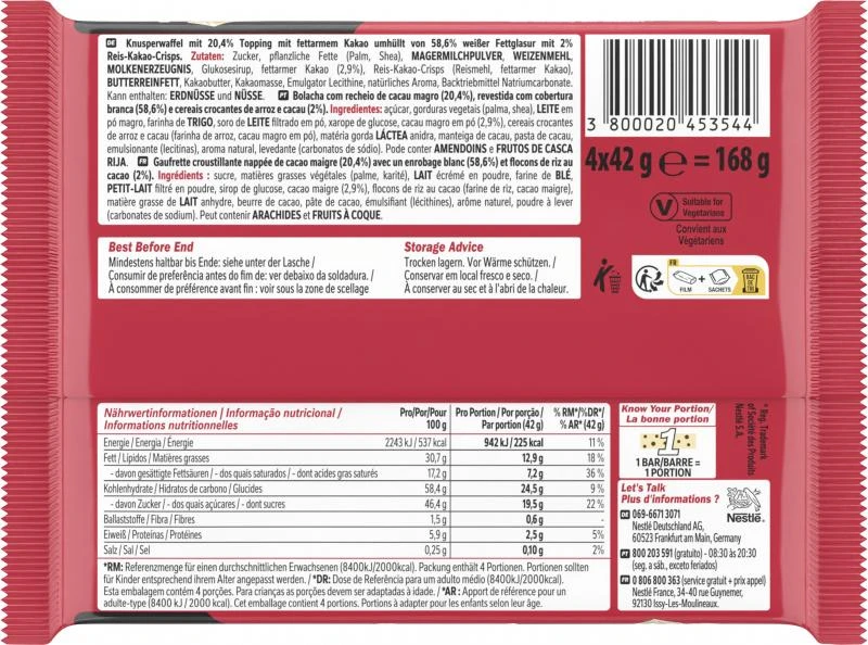 Der neue „KitKat ChunKy Black & White“ kombiniert knusprige Kakaowaffeln mit leckerer Kakaocreme und einer weißen Hülle. Für den extra Crunch sorgen die Reis-Kakao-Crisps in der Ummantelung. Der Riegel ist zartschmelzend und gleichzeitig knusprig – der perfekte Mix.