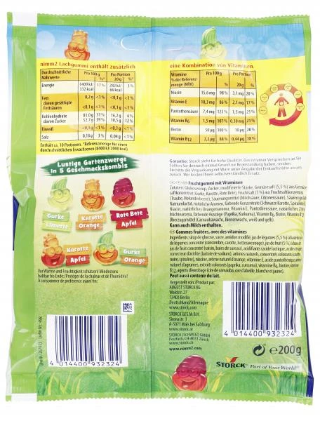 Für alle Veggie-Fans gibt es nimm2 Lachgummi jetzt auch mit Gemüsesaft! In nimm2 Lachgummi Gartenzwerge stecken fünf leckere Gemüse-Frucht-Kombis für jede Menge Naschspaß.