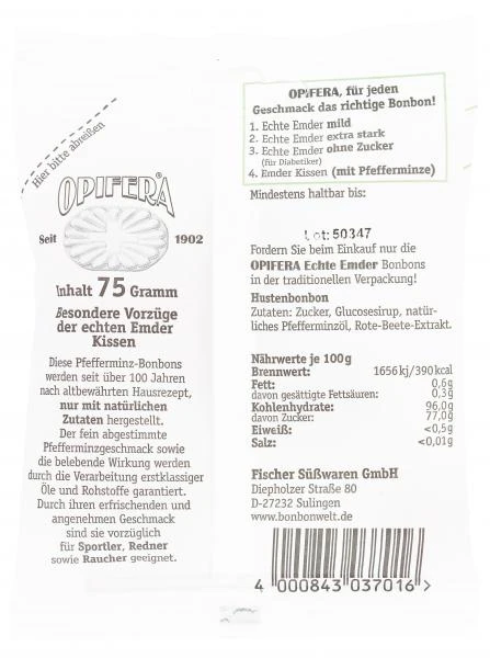 Diese Pfefferminz-Bonbons werden seit über 100 Jahren nach altbewährtem Hausrezept nur mit natürlichen Zutaten hergestellt. Der fein abgestimmte Pfefferminzgeschmack sowie die belebende Wirkung werden durch die Verarbeitung erstklassiger Öle und Rohstoffe garantiert. Durch ihren erfrischenden und angenehmen Geschmack sind sie vorzüglich für Raucher, Sportler sowie Redner geeignet.