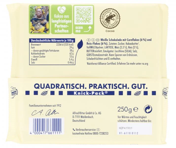 Was ist groß, sieht hervorragend aus und sorgt überall für helle Freude? Sie ahnen es schon: die 250g Tafel Weiß + Crisp in der Design Edition. Diese Tafel ist eine echte Liebeserklärung an alle Knusperfans. Ihre gerösteten Maiscorn- und Reisflakes machen sie gleich doppelt kross.