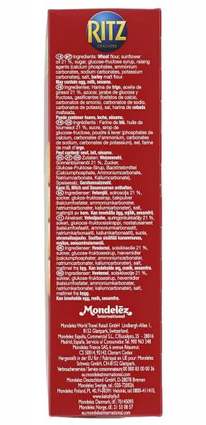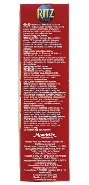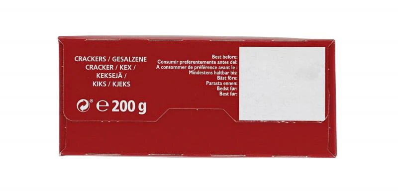 | Gesalzene Cracker. | WEIZENMEHL, Sonnenblumenöl 21%, Zucker, Glukose-Fruktose-Sirup, Backtriebmittel (Calciumphosphate Ammoniumcarbonate, Natriumcarbonate, Kaliumcarbonate), Speisesalz, GERSTENMALZMEHL. Kann EI, MILCH und SESAMSAMEN enthalten. |